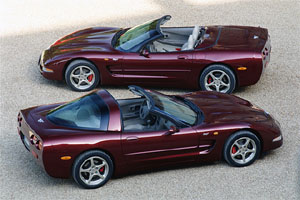 El exterior de la versión conmemorativa destaca por el atractivo color rojo aniversario y las llantas de aleación color champagne, con emblemas especiales. También se caracteriza por su interior color avena que incluye logotipos del 50° Aniversario en la carrocería, e insignias bordadas en los asientos y en las alfombrillas. Además, el equipamiento de serie de la versión del aniversario incluye ahora el sistema de amortiguación con Control de Conducción Selectivo Magnético, disponible como opción en los modelos de producción de serie 2003. Sólo durante el año del aniversario, el suntuoso deportivo está disponible, en unidades limitadas, con la carrocería coupé (con el techo tipo targa desmontable) y convertible. Para los que adquieran un Corvette 2003 de producción de serie, el acabado en Spiral Gray Metallic representa además un atractivo color opcional.